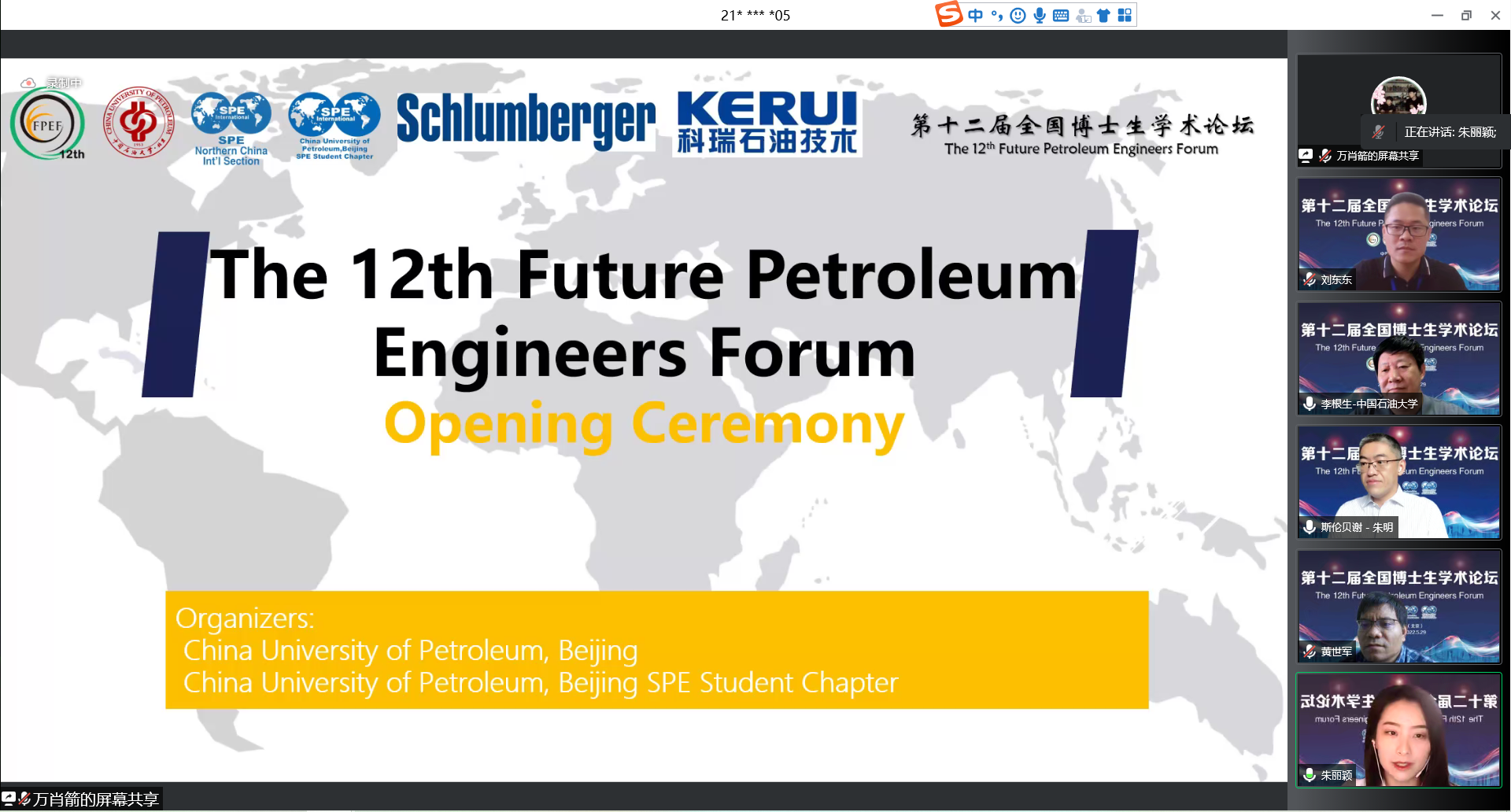5月28日上午,第十二届全国博士生学术论坛在线开幕。中国天天色天天(北京)副校长李根生,国际石油工程师协会中国北方分会主席周东波,斯伦贝谢数字与一体化集团总经理朱明,山东科瑞油田服务集团人力资源总监贾小涛、董秘办主任李小军,山东科瑞石油技术有限公司油藏工程所所长黄咏梅、采油工程所工程师丁国,中石大学生工作处及石油工程学院相关负责人等参加开幕式。